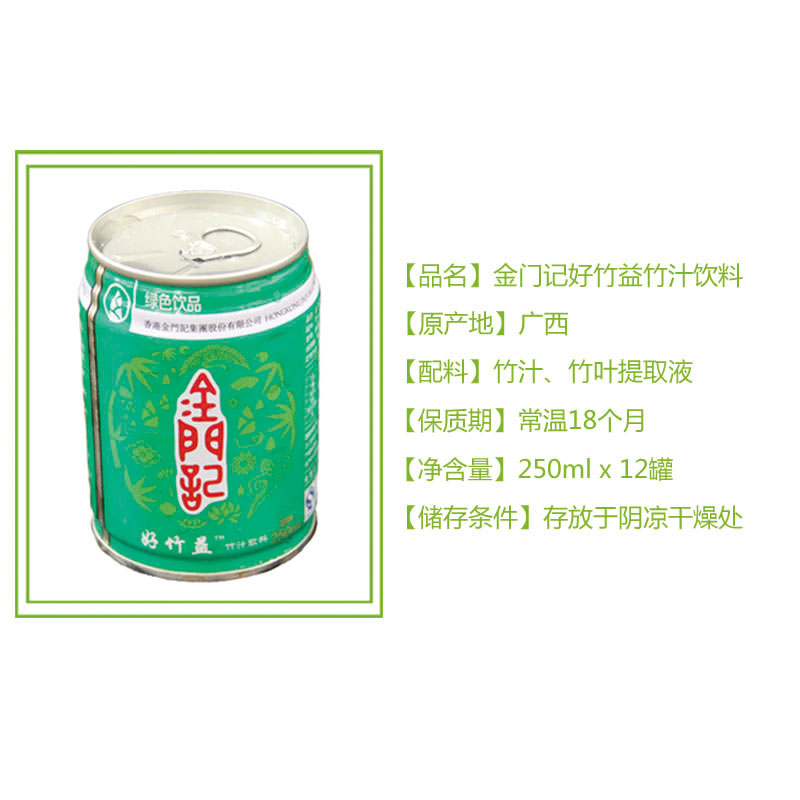 金门记广西纯天然竹汁饮料老少皆宜无添加无残农250ml*12瓶一箱